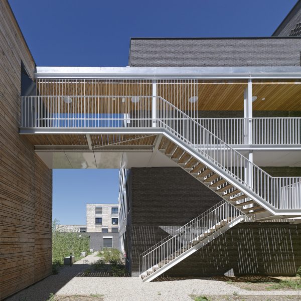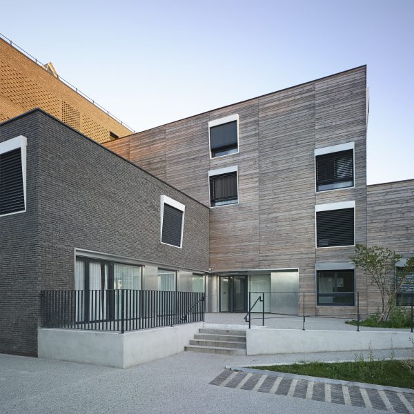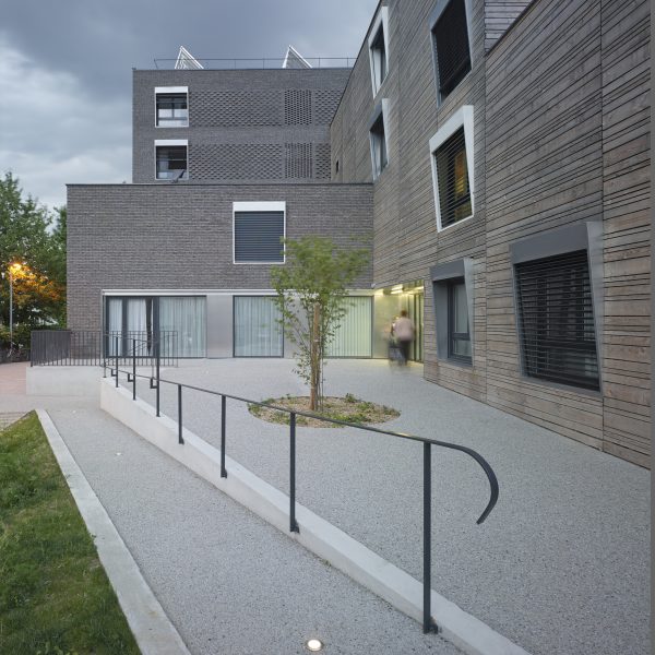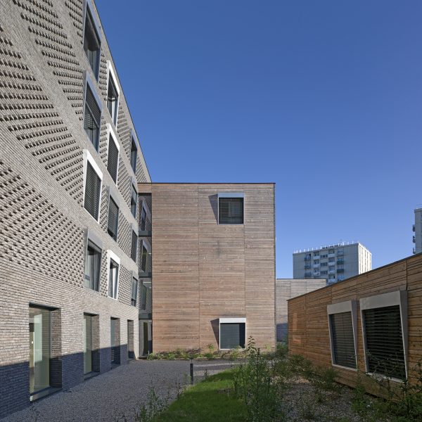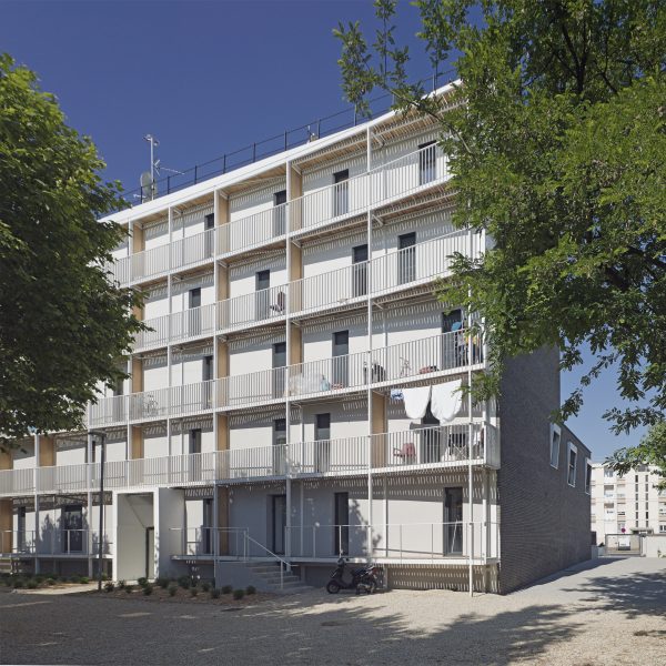 Le projet consiste en la réhabilitation d’un immeuble existant en R+4, conjointement à l’ajout de nouvelles surfaces et nouveaux volumes, afin d’aboutir à la création de 160 logements sociaux. Les espaces extérieurs sont également retravaillés, avec pour objectif le maintien et la valorisation des espaces verts existants, permettant un meilleur usage pour les habitants.