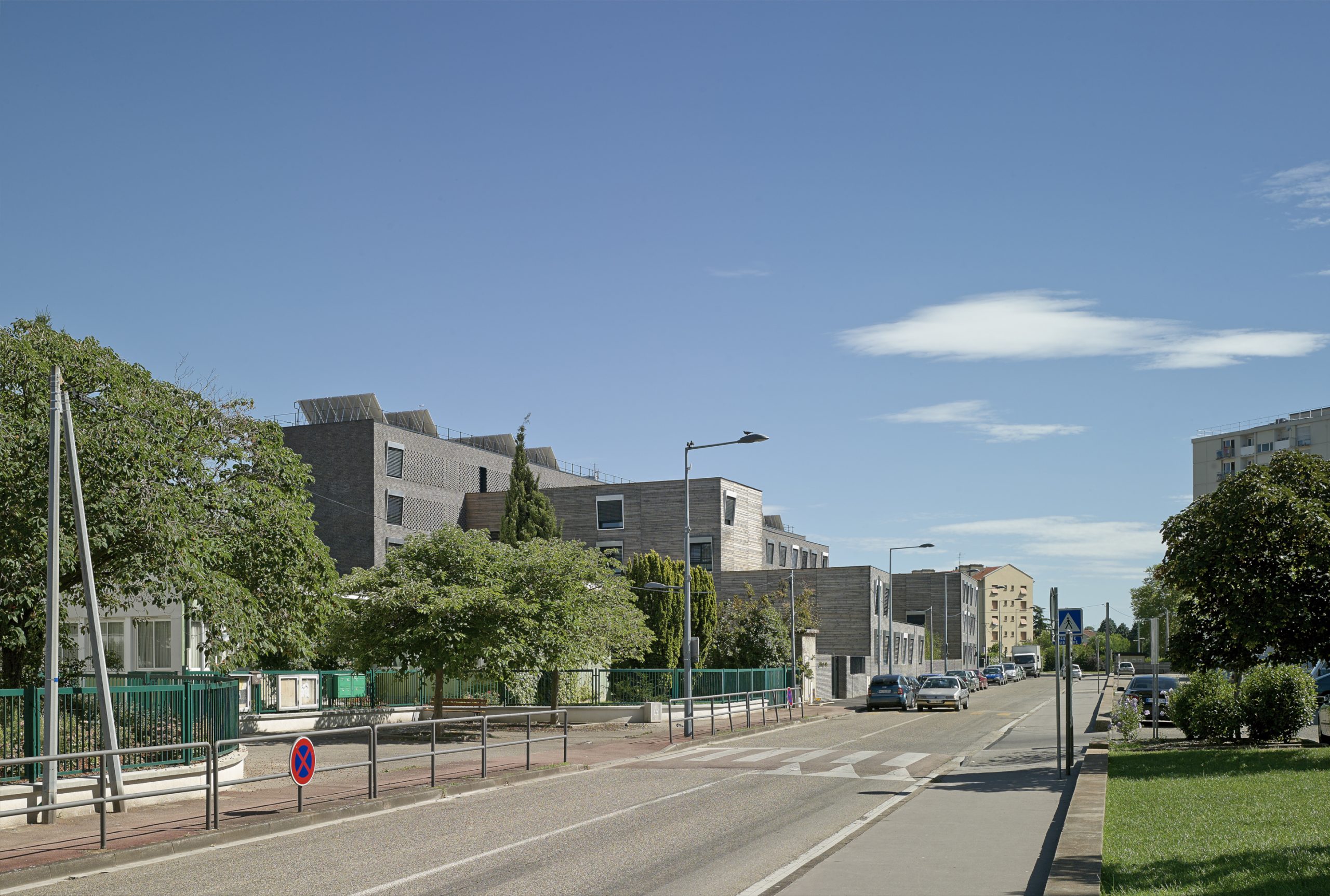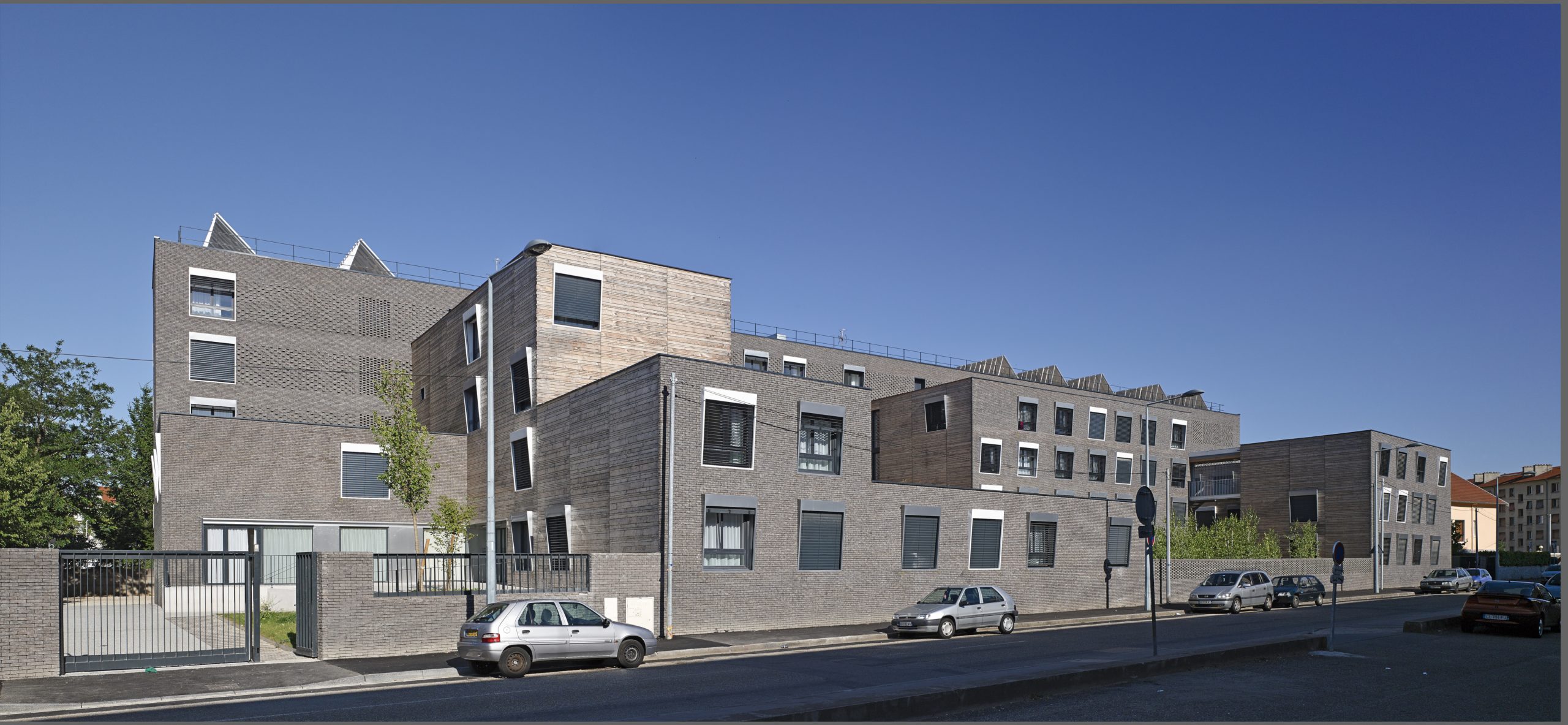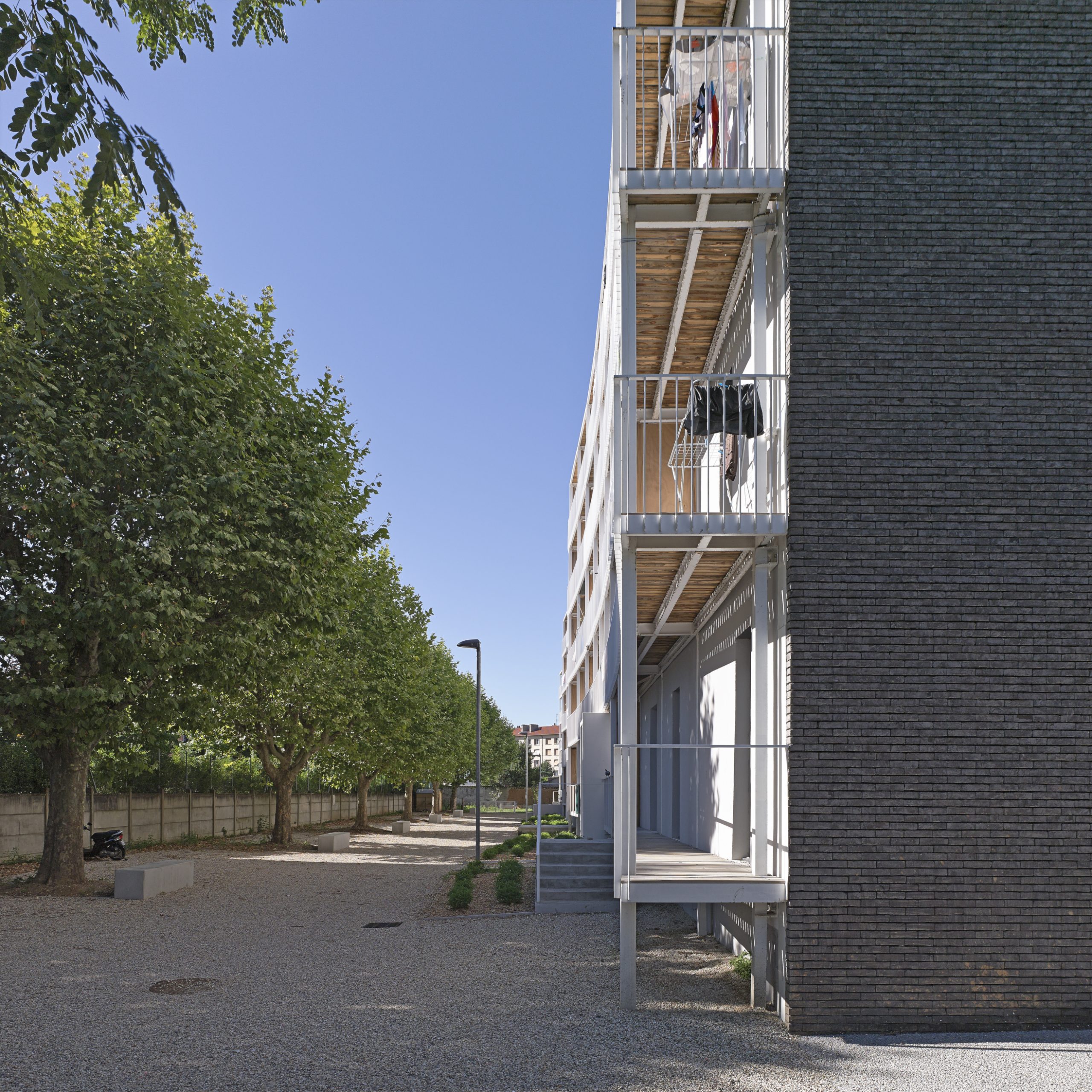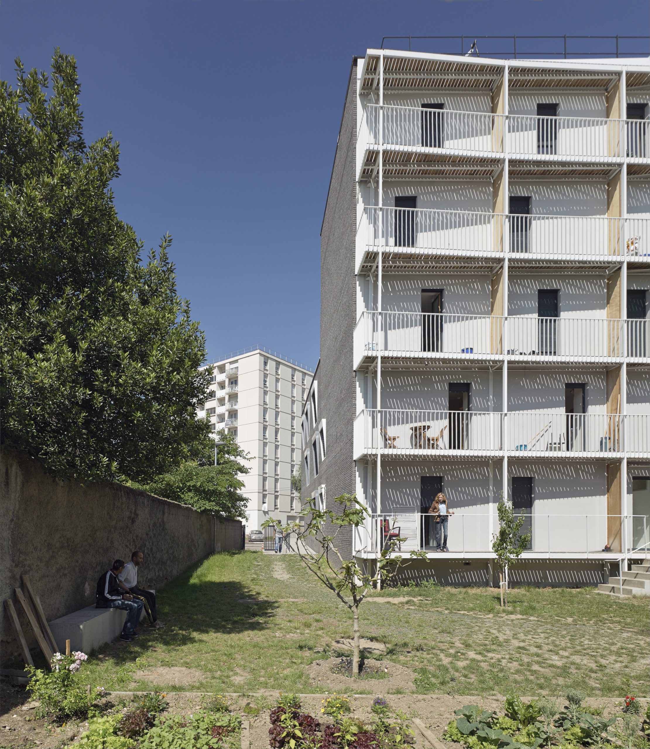 Le projet consiste en la réhabilitation d’un immeuble existant en R+4, conjointement à l’ajout de nouvelles surfaces et nouveaux volumes, afin d’aboutir à la création de 160 logements sociaux. Les espaces extérieurs sont également retravaillés, avec pour objectif le maintien et la valorisation des espaces verts existants, permettant un meilleur usage pour les habitants.