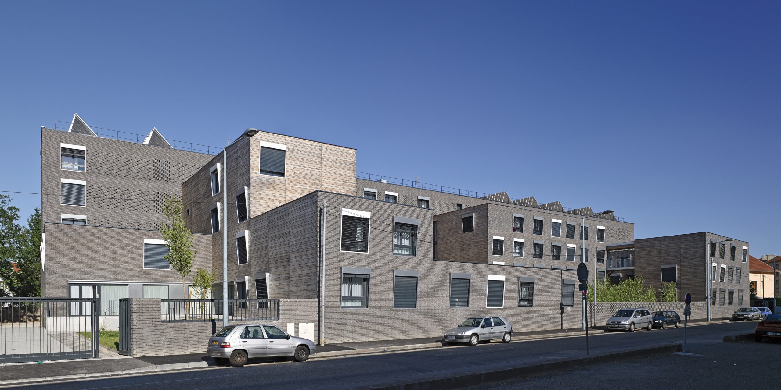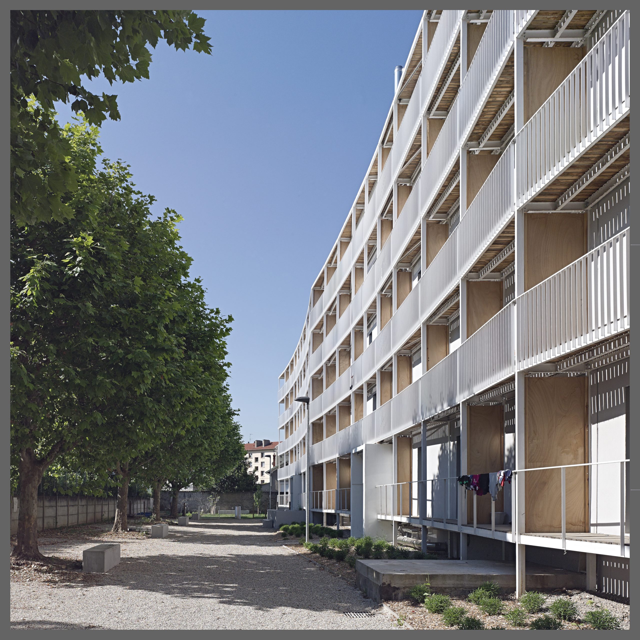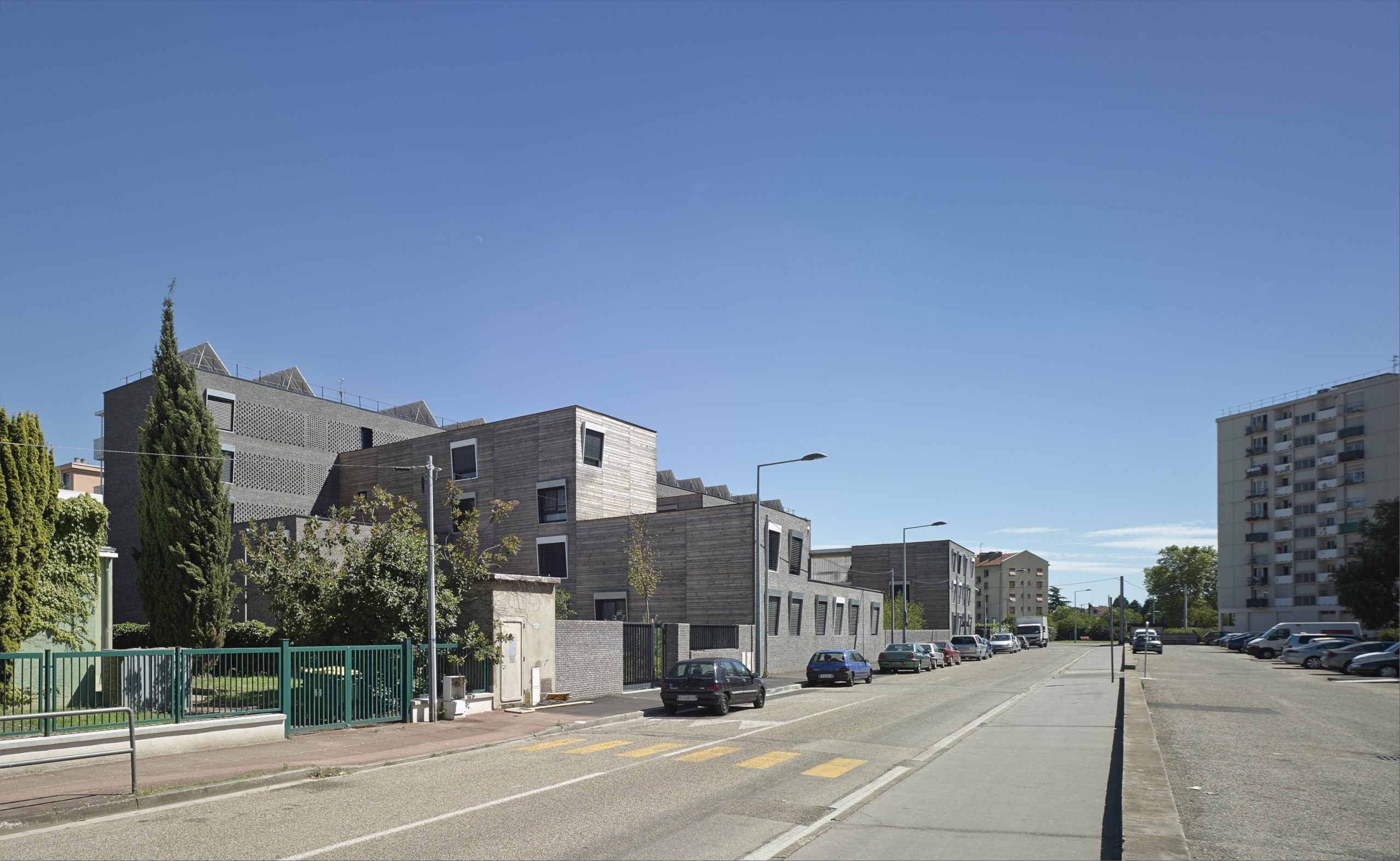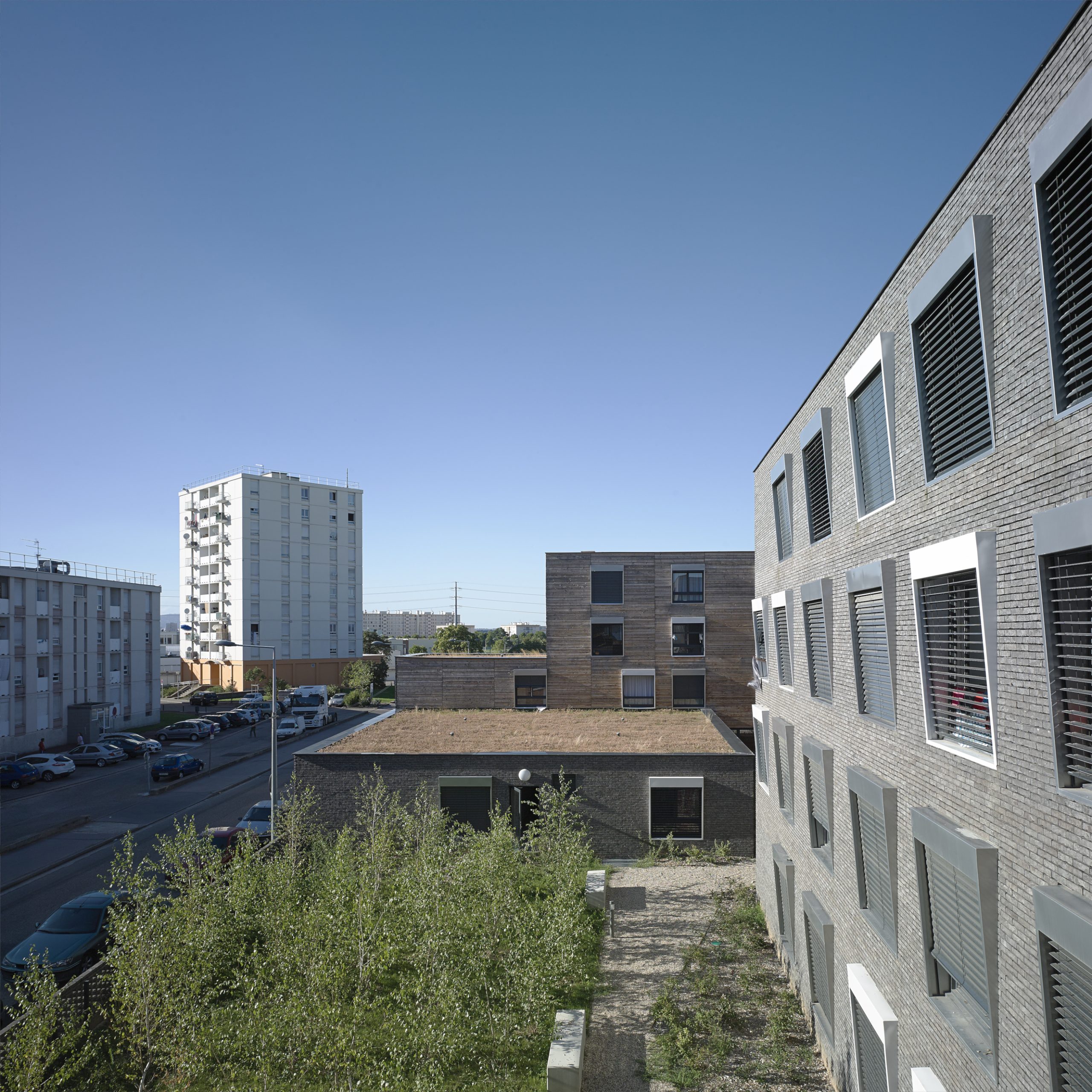 Le projet consiste en la réhabilitation d’un immeuble existant en R+4, conjointement à l’ajout de nouvelles surfaces et nouveaux volumes, afin d’aboutir à la création de 160 logements sociaux. Les espaces extérieurs sont également retravaillés, avec pour objectif le maintien et la valorisation des espaces verts existants, permettant un meilleur usage pour les habitants.