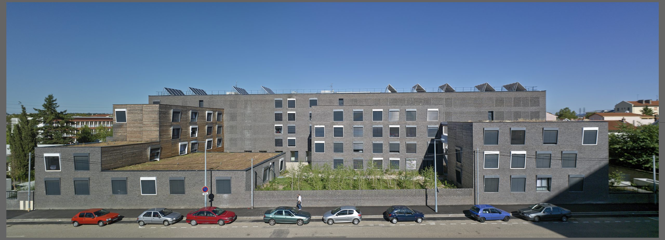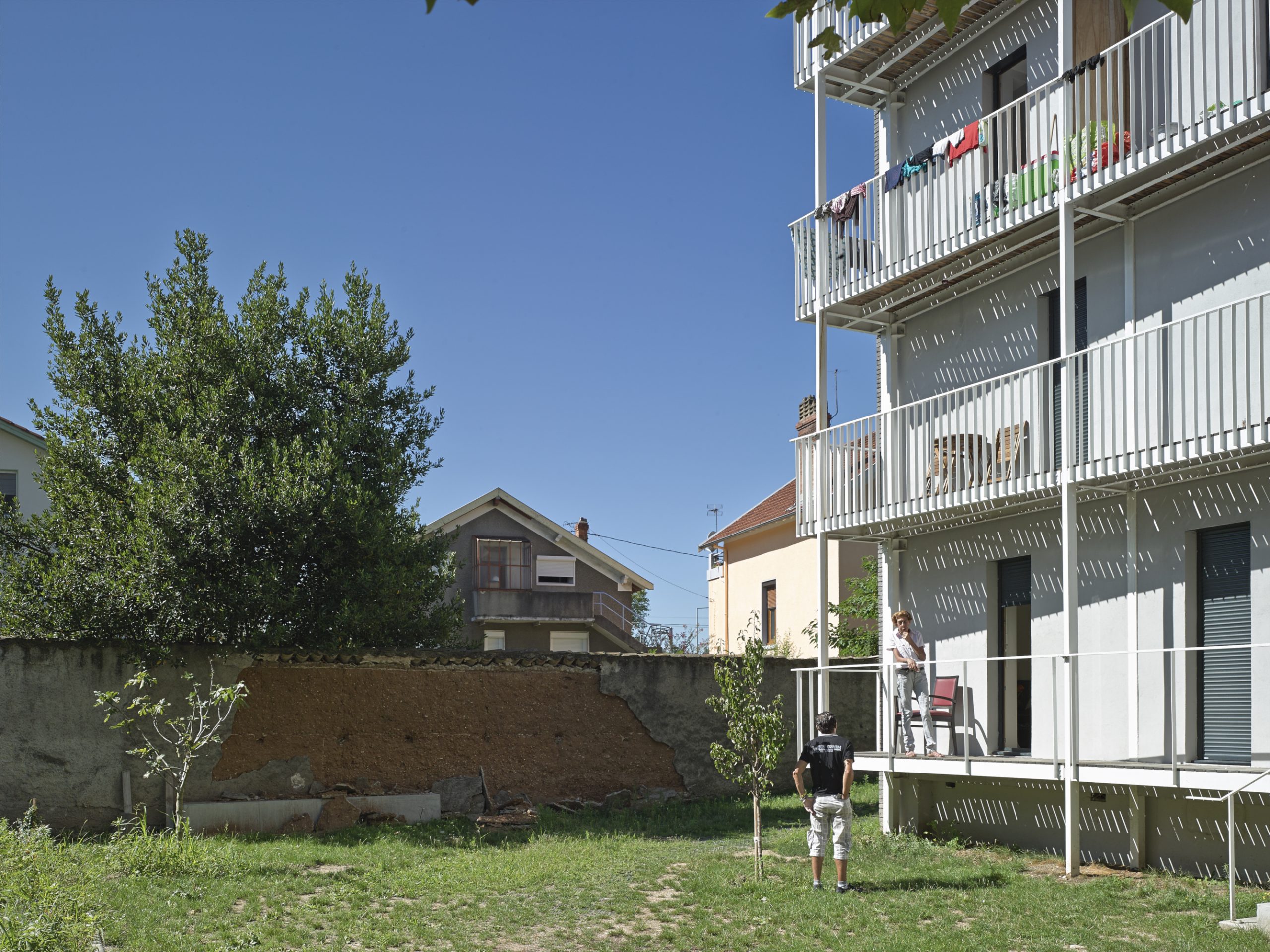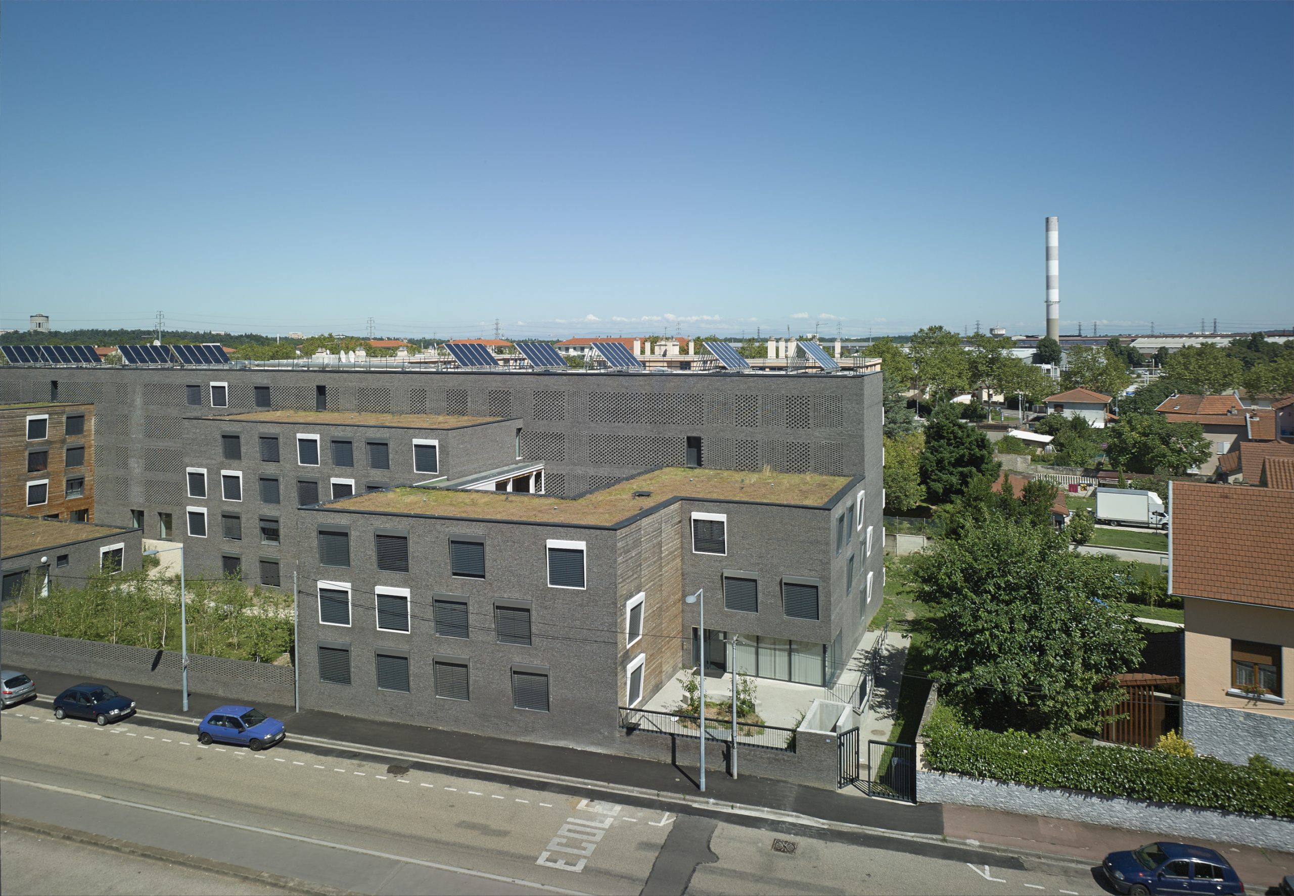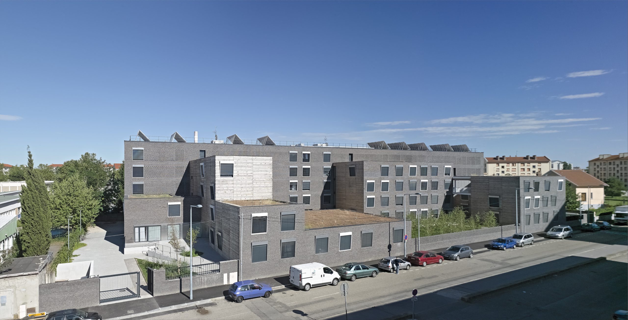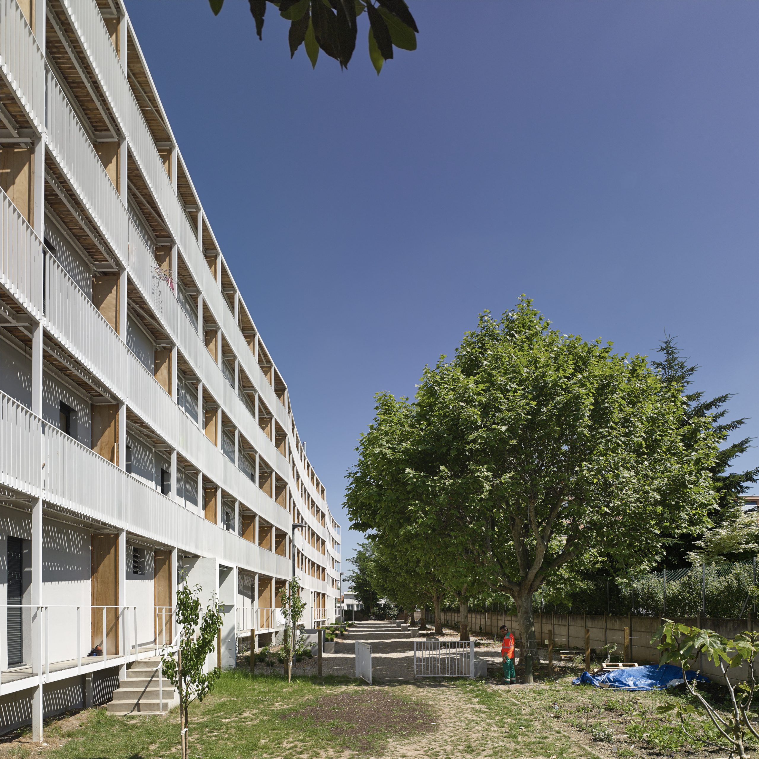 Le projet consiste en la réhabilitation d’un immeuble existant en R+4, conjointement à l’ajout de nouvelles surfaces et nouveaux volumes, afin d’aboutir à la création de 160 logements sociaux. Les espaces extérieurs sont également retravaillés, avec pour objectif le maintien et la valorisation des espaces verts existants, permettant un meilleur usage pour les habitants.