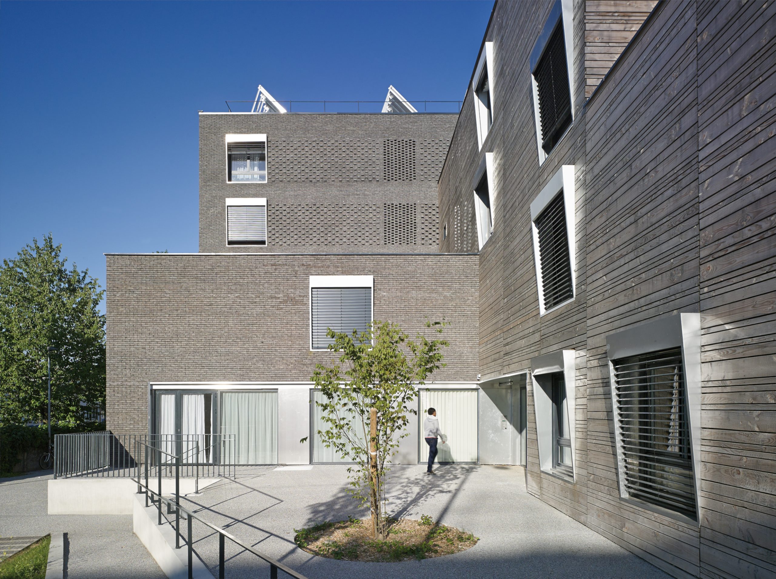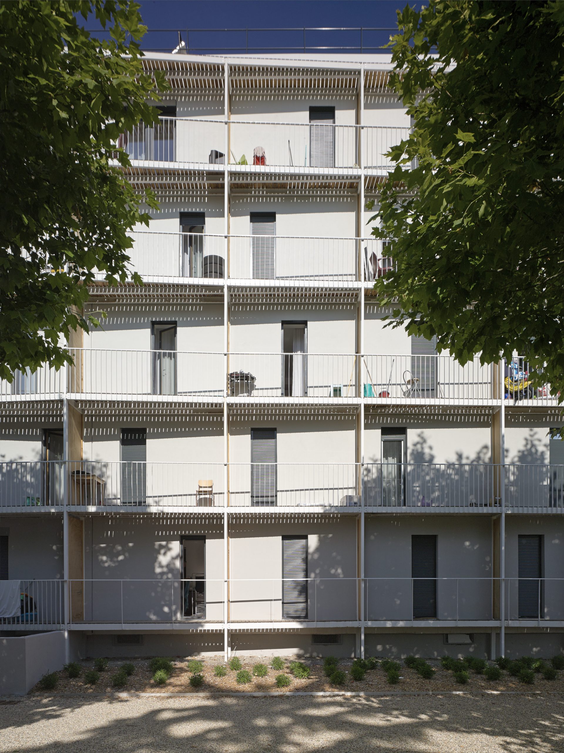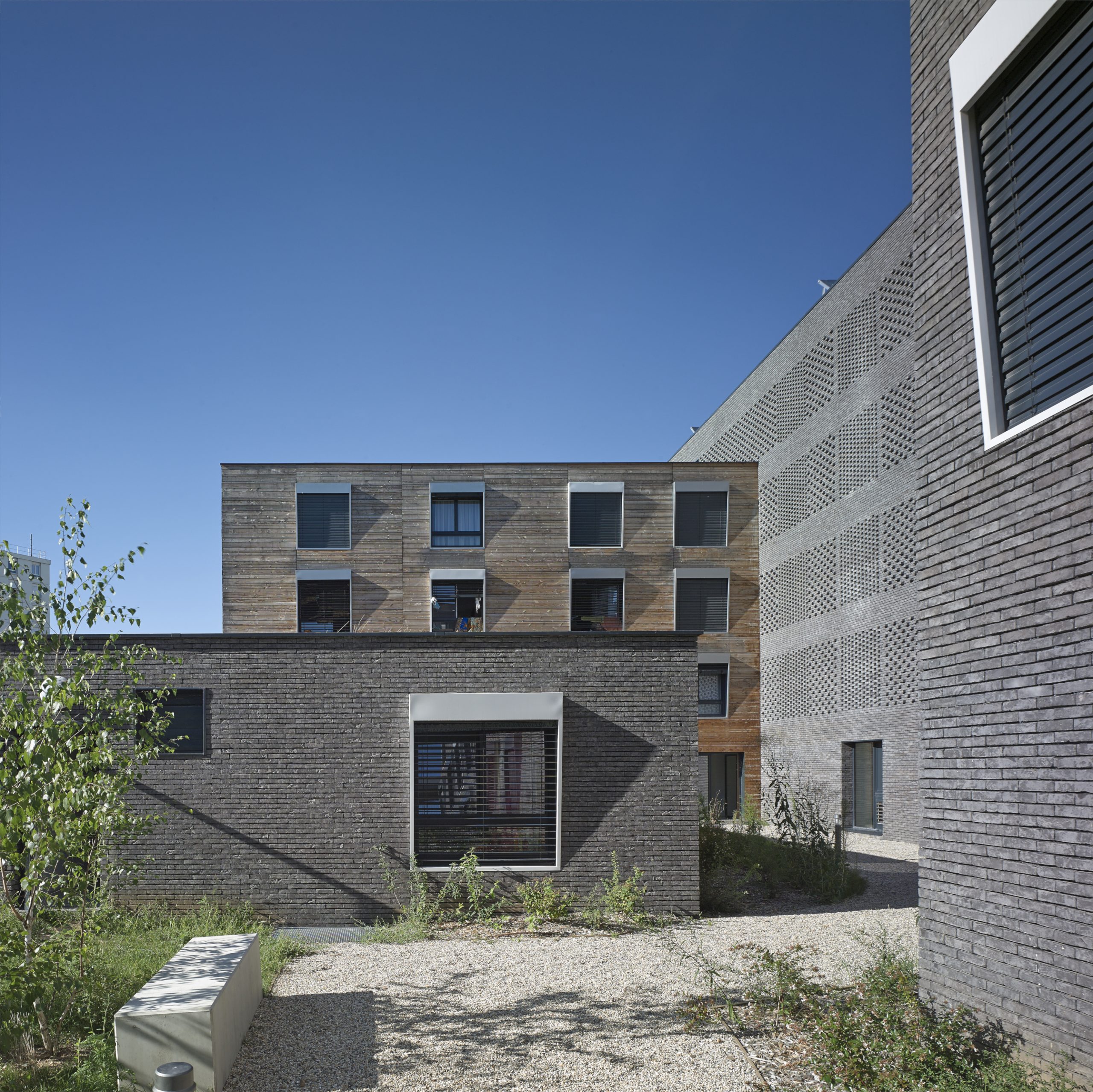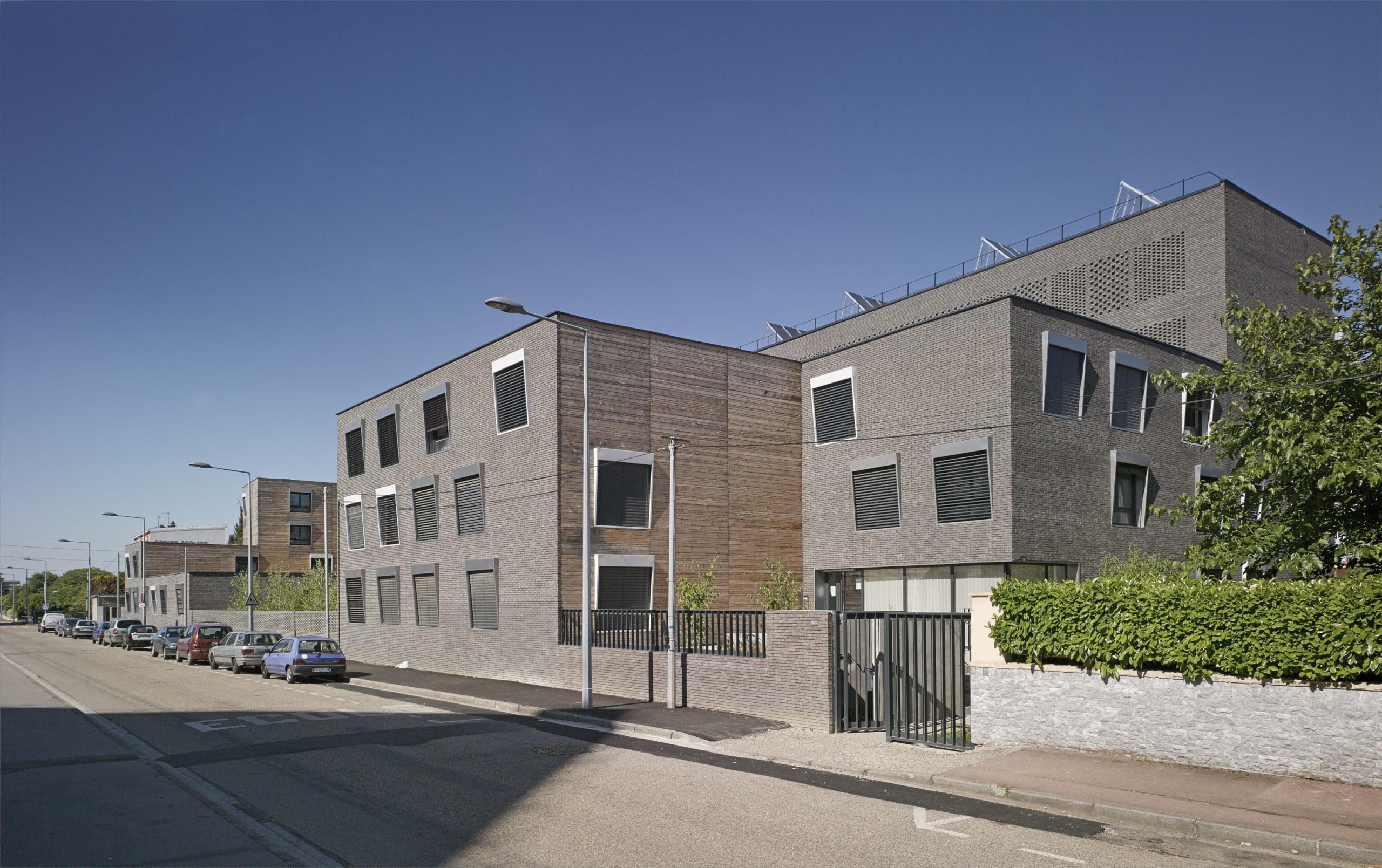 Le projet consiste en la réhabilitation d’un immeuble existant en R+4, conjointement à l’ajout de nouvelles surfaces et nouveaux volumes, afin d’aboutir à la création de 160 logements sociaux. Les espaces extérieurs sont également retravaillés, avec pour objectif le maintien et la valorisation des espaces verts existants, permettant un meilleur usage pour les habitants.