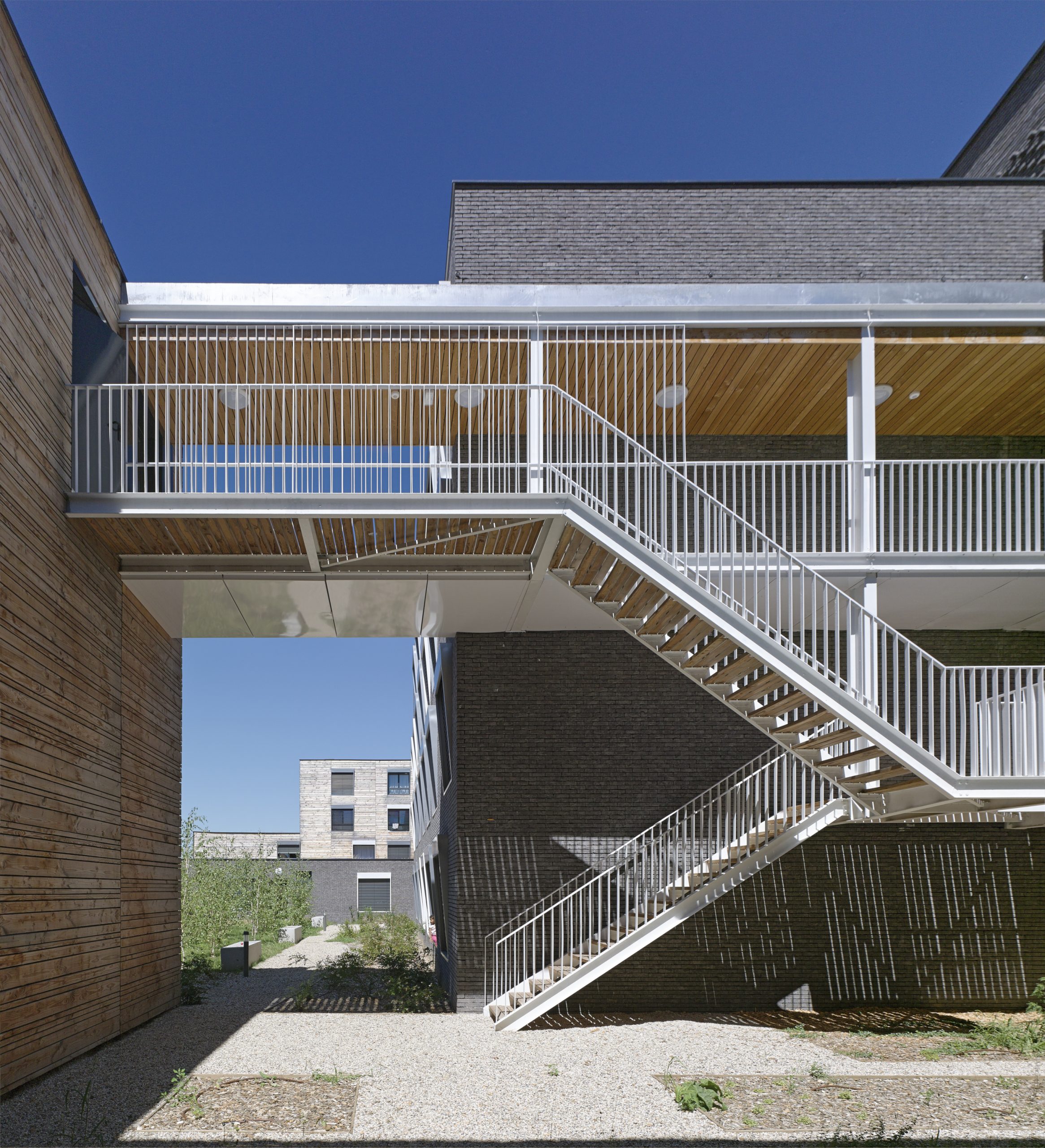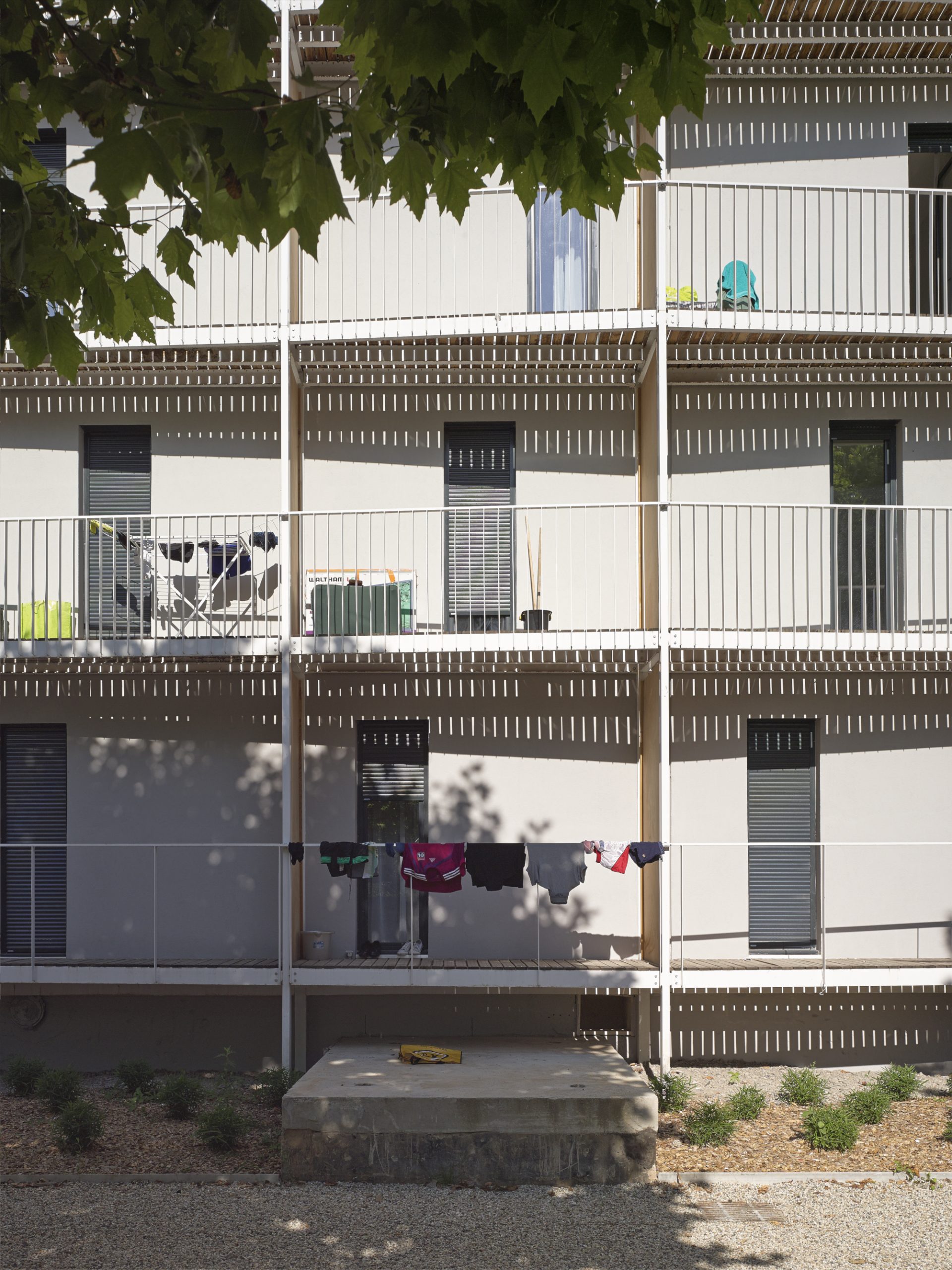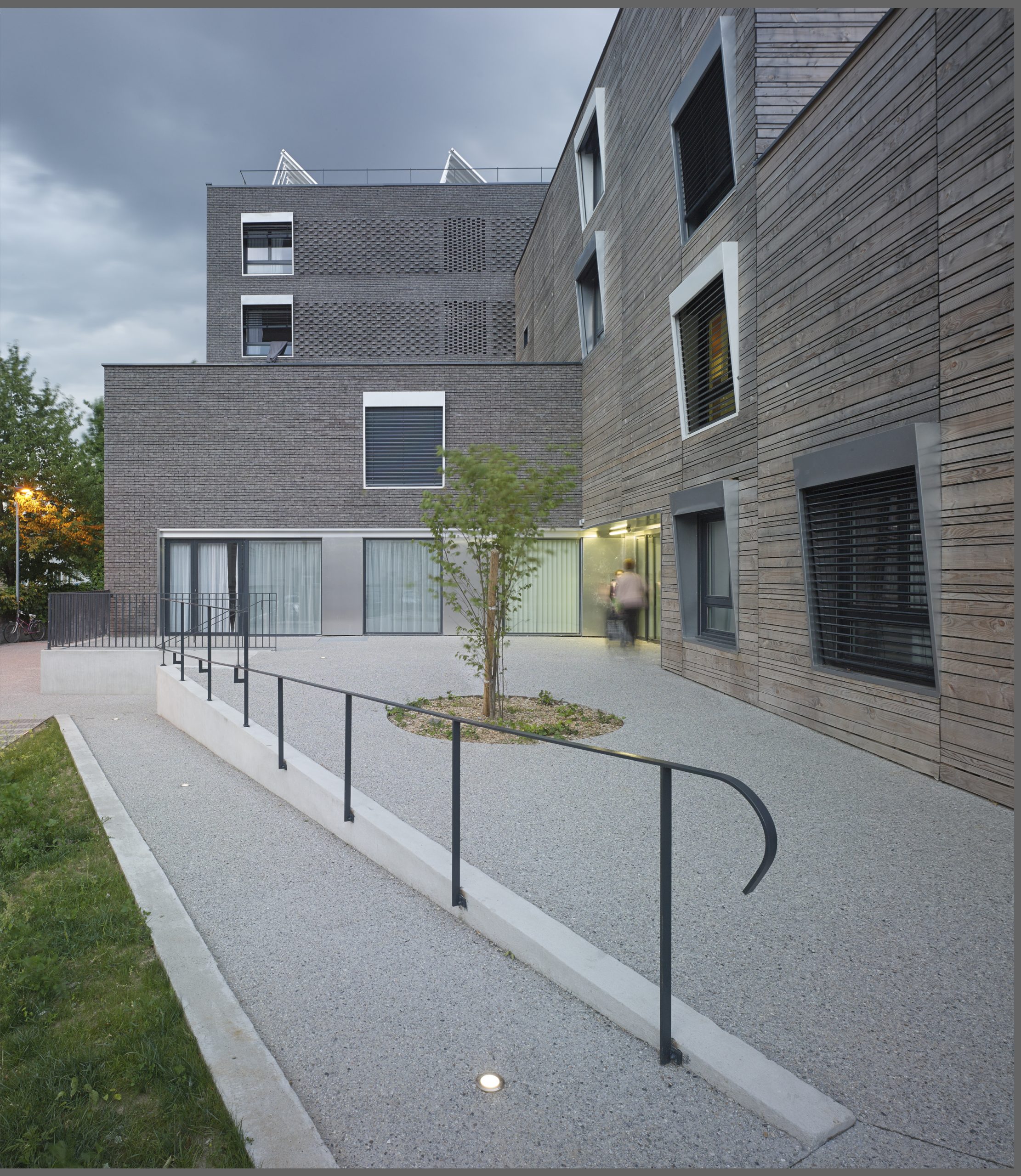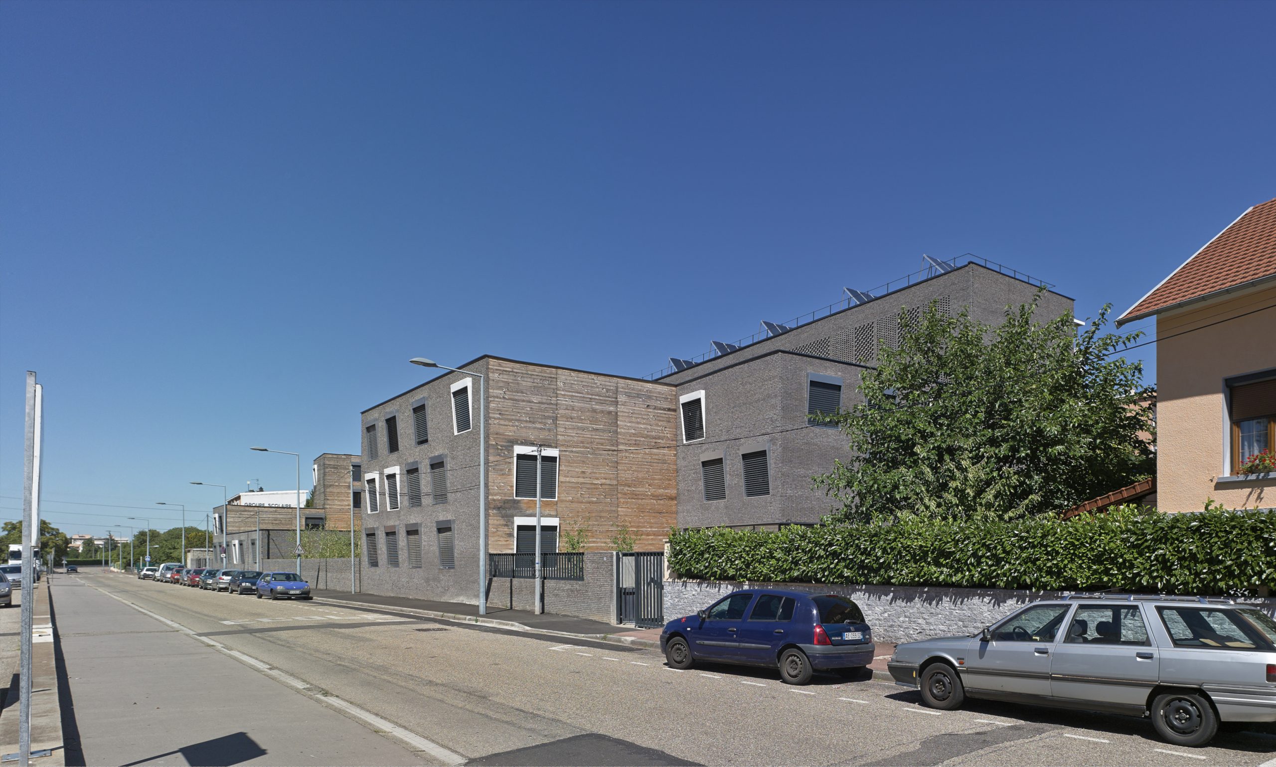 Le projet consiste en la réhabilitation d’un immeuble existant en R+4, conjointement à l’ajout de nouvelles surfaces et nouveaux volumes, afin d’aboutir à la création de 160 logements sociaux. Les espaces extérieurs sont également retravaillés, avec pour objectif le maintien et la valorisation des espaces verts existants, permettant un meilleur usage pour les habitants.