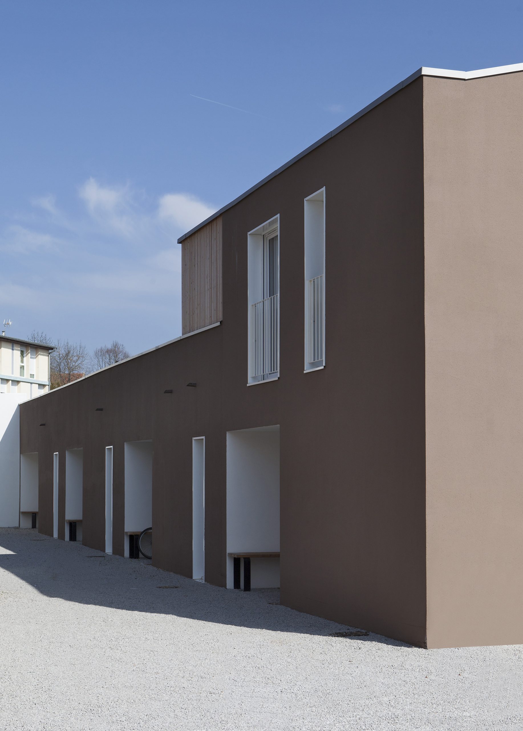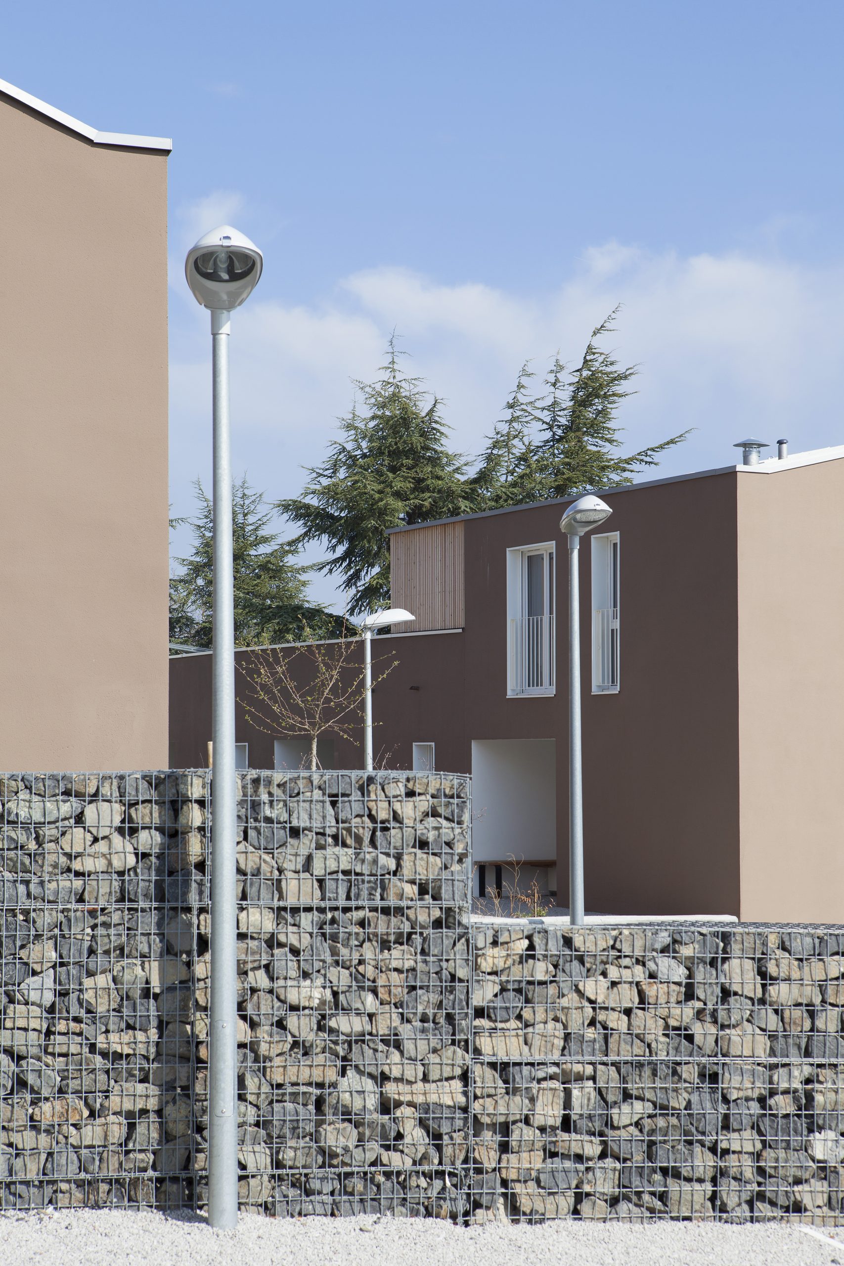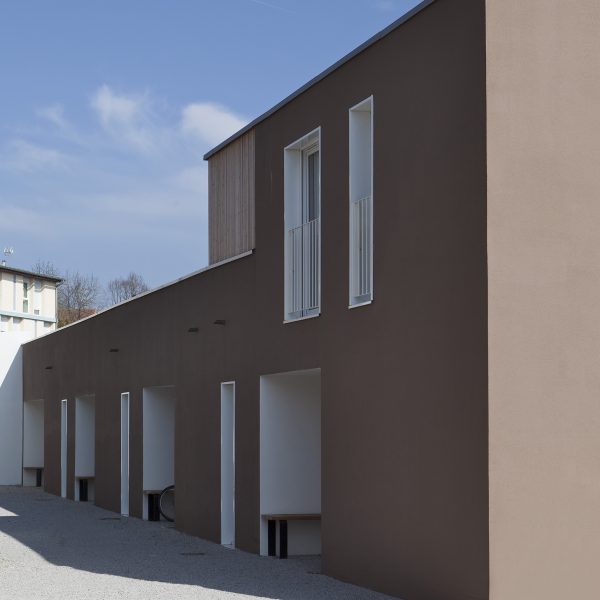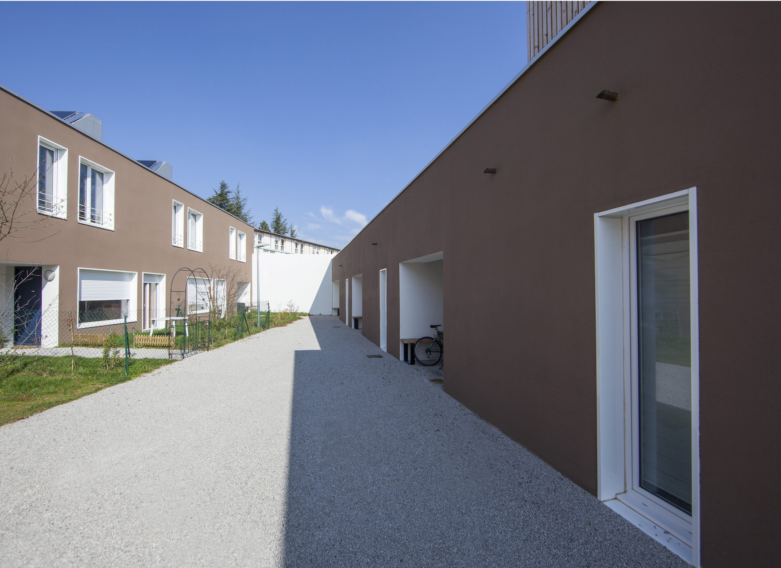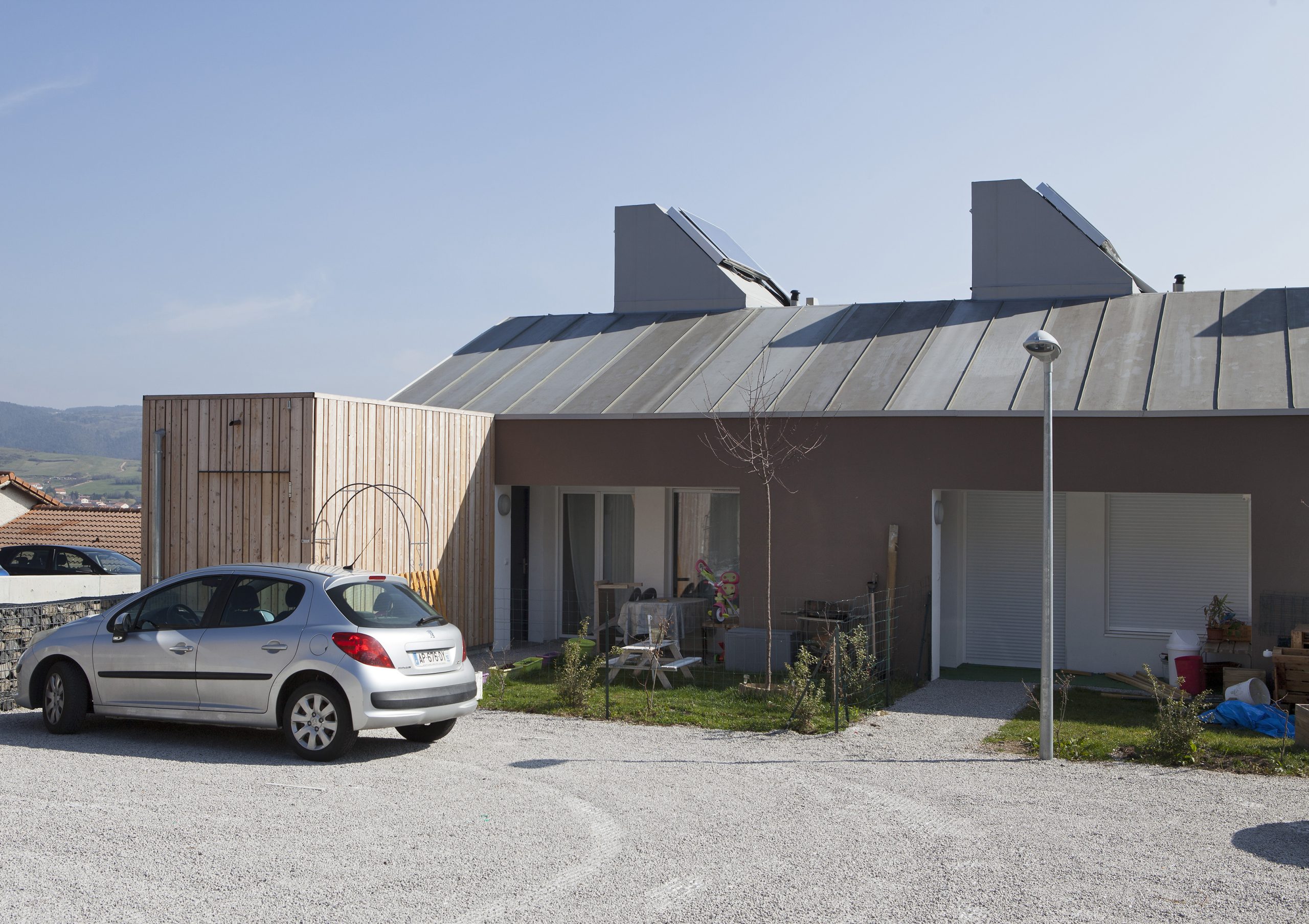 Projet de construction de 20 logements locatifs sociaux situé au Clos de Beauregard à Chadrac en Haute-Loire. La parcelle se situe sur les hauteurs de Chadrac, dans une partie de la ville au tissu lâche, composé dans sa quasi-to- talité de maisons individuelles. Les cheminements de véhicules dans la parcelle sont réduits à leur strict minimum pour laisser le plus de place possible aux cheminements piétons et aux espaces végé- talisés. Ensuite, les accès à chaque logement se font de manière individualisé, garantissant un compromis entre l’unité architecturale du projet et la sensation d’indépen- dance de chaque appartement. L’ensemble des appartements bénéficient d’un espace extérieur privatisé donnant sur l’entrée des logements. Les autres espaces extérieurs sont en talus enherbés de manière à limiter au maximum les murs de soutènement. Le dessin de la toiture permet l’intégration de panneaux solaires orientés au Sud tout en favorisant l’apport de lumière naturelle zénithale au cœur des logements.