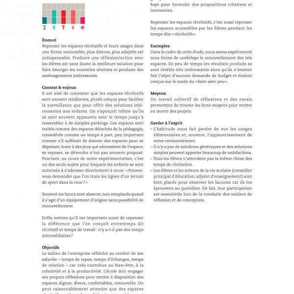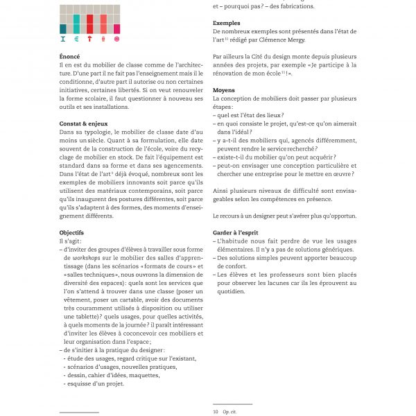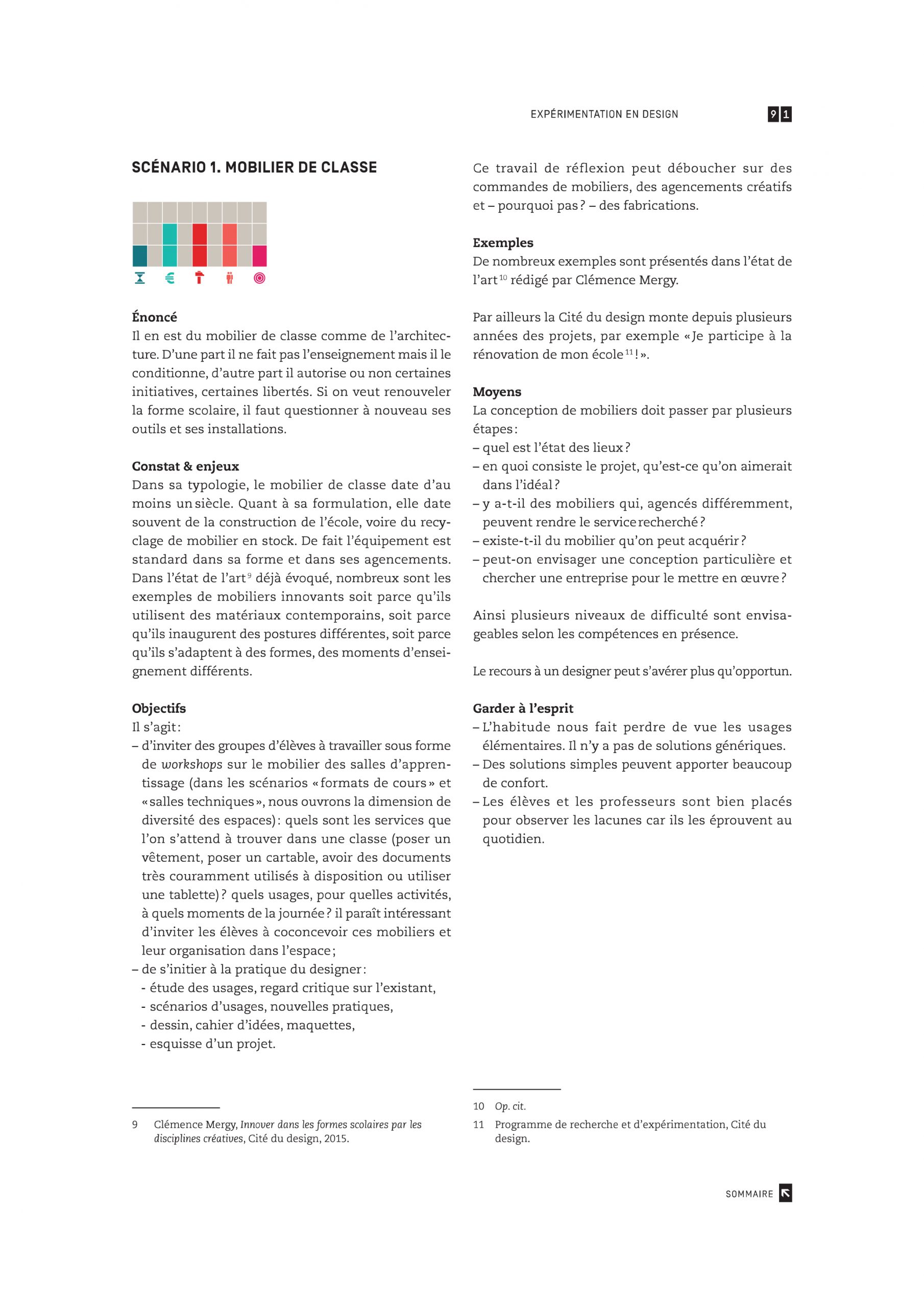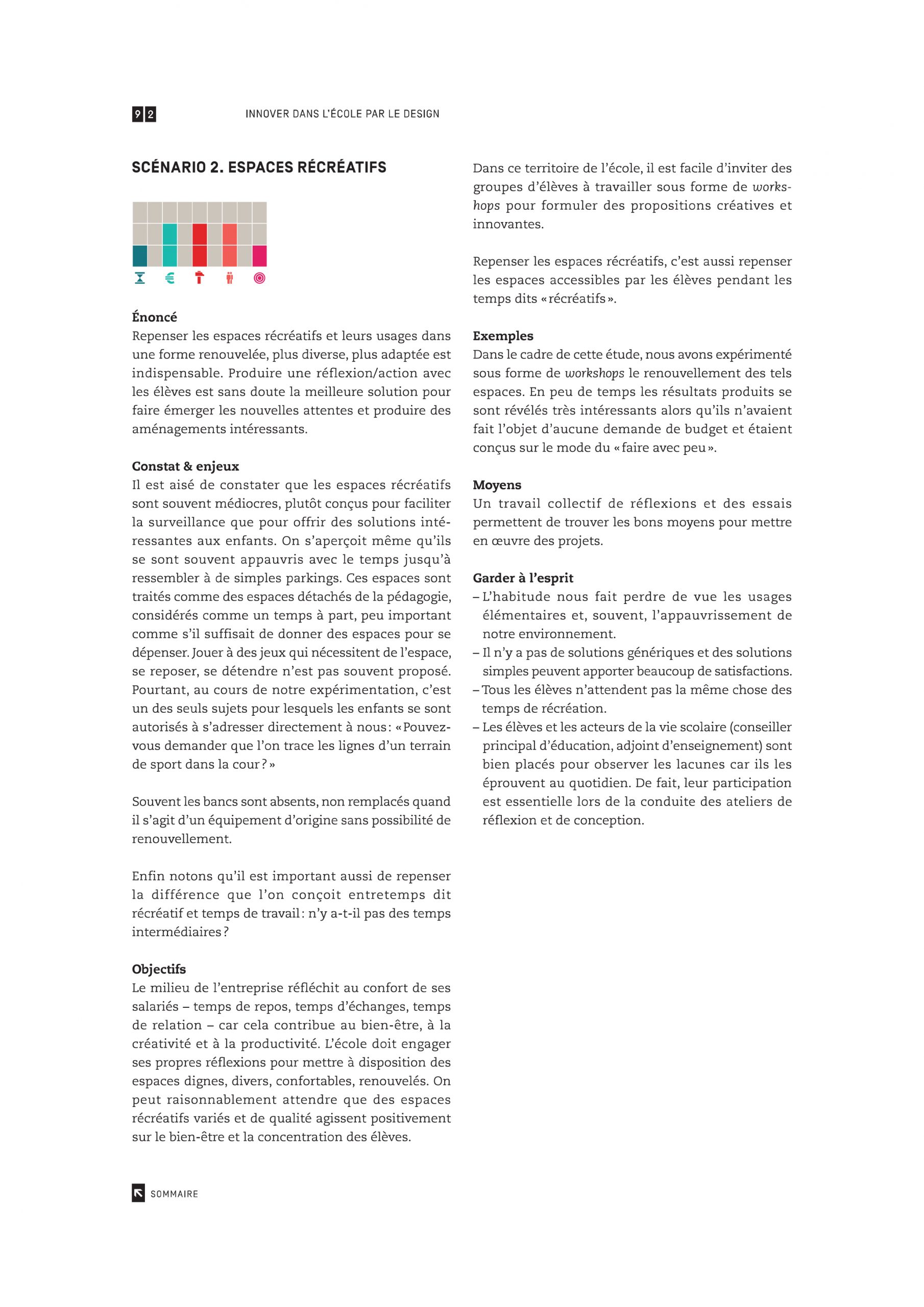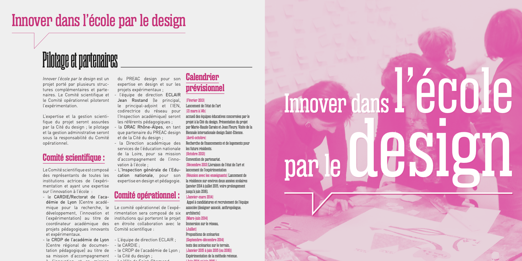 Spécificité : Edition d’un ouvrage collectif intitulé « Innover dans l’école par le design » regroupant 40 scénarios d’innovation pédagogique pour le milieu scolaire.